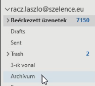 A kiválasztott levelek átmenetileg átkerülnek az Archívum mappába:
